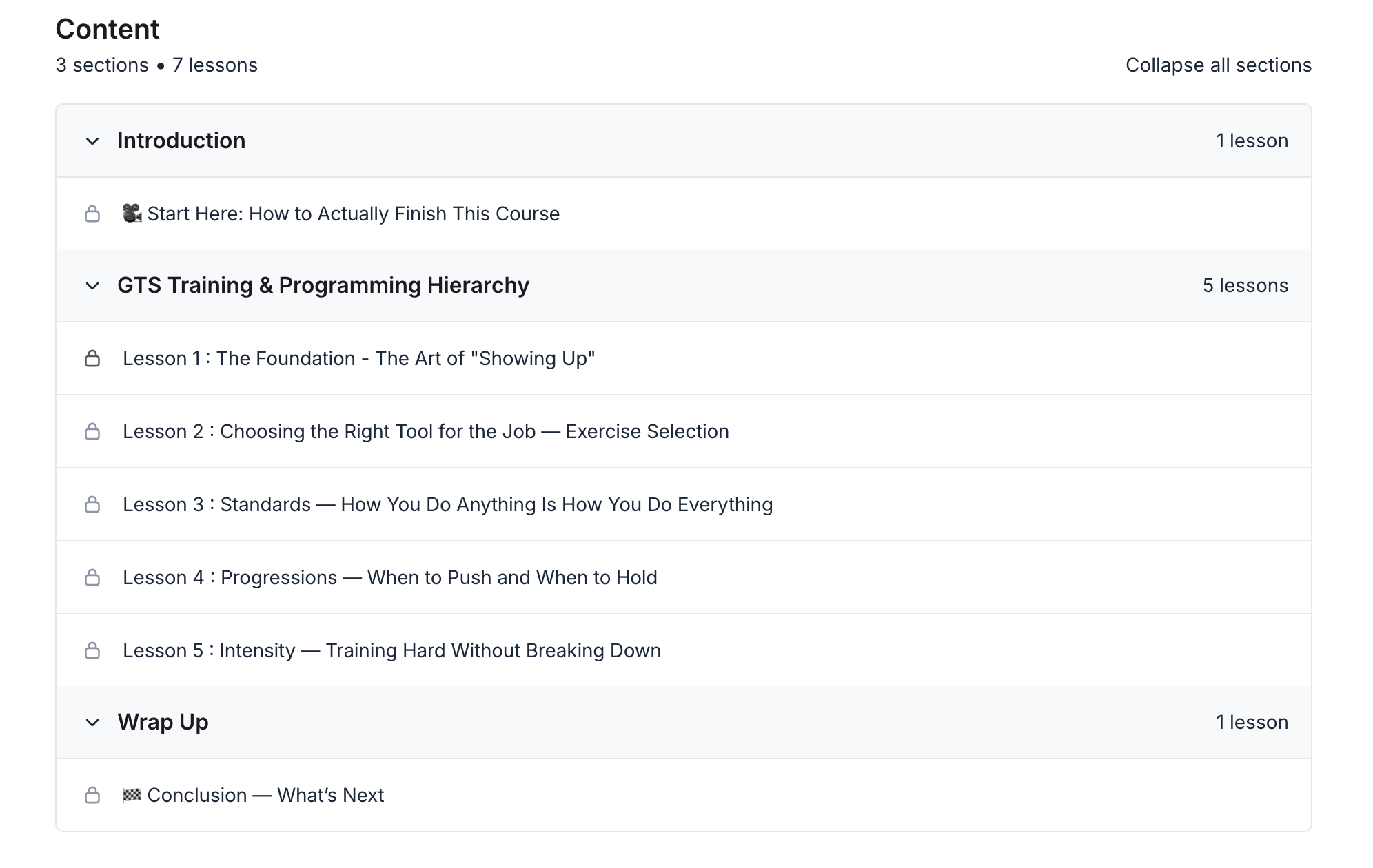 I built this course to give you the same structure we use with our GTS coaching clients. The framework that keeps people training year after year, not for short bursts.